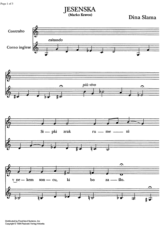 Digital Sheet Music for Jesenska by , Dina Slama scored for Alto/English Horn or Viola; id:334423