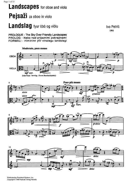 Digital Sheet Music for Landscapes by , Ivo Petric scored for Oboe/Viola; id:334960