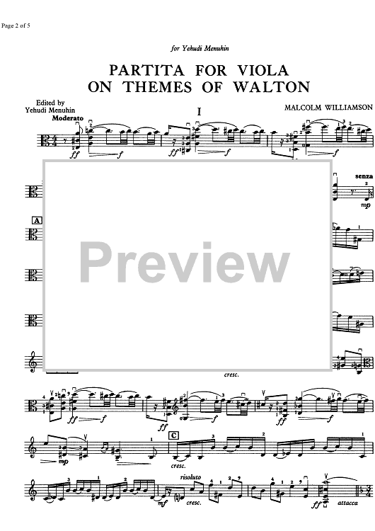 Digital Sheet Music for Partita on Themes of Walton by Malcolm Williamson scored for Viola; id:333614