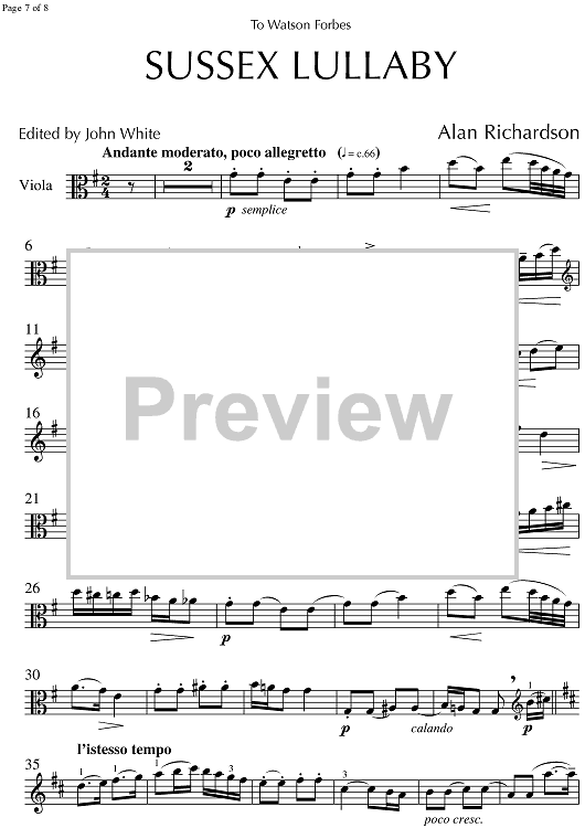Digital Sheet Music for Sussex Lullaby by , Alan Richardson scored for Viola/Piano; id:321923