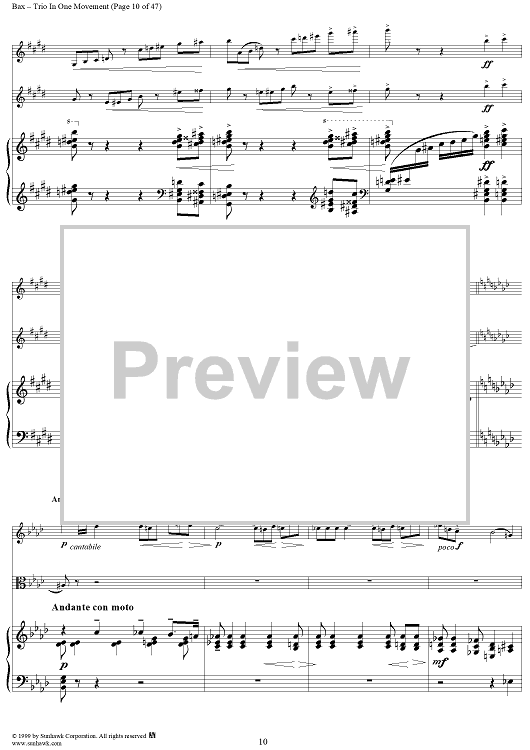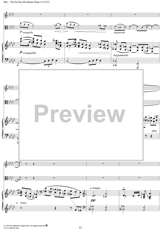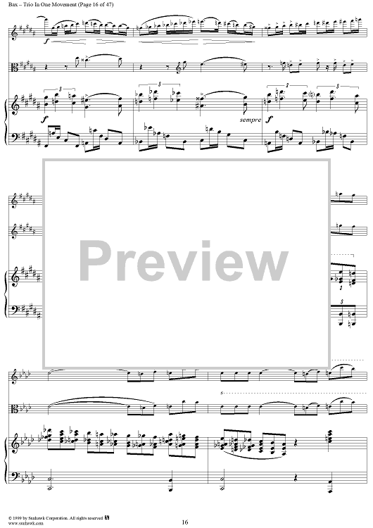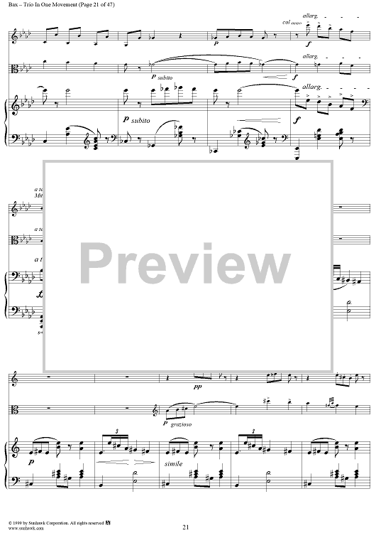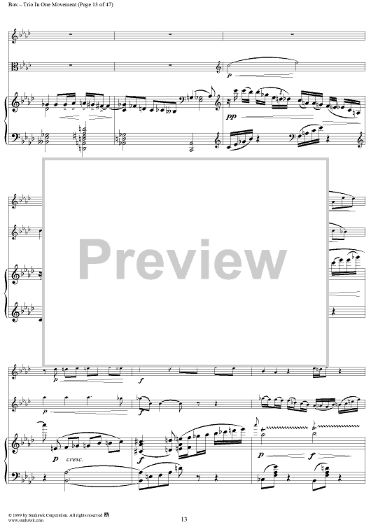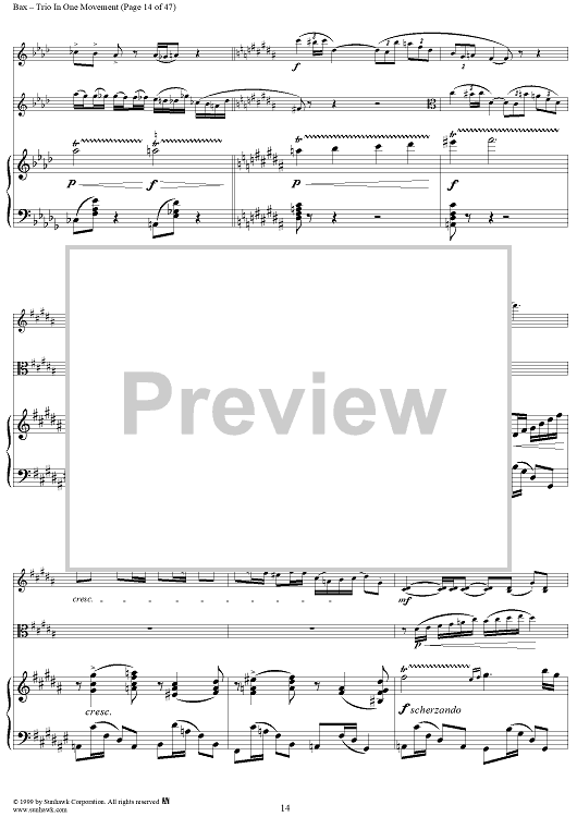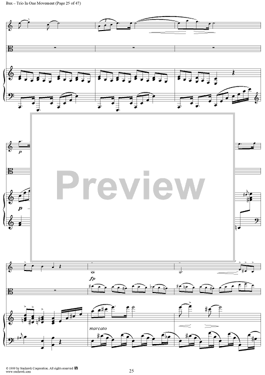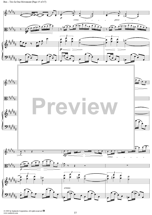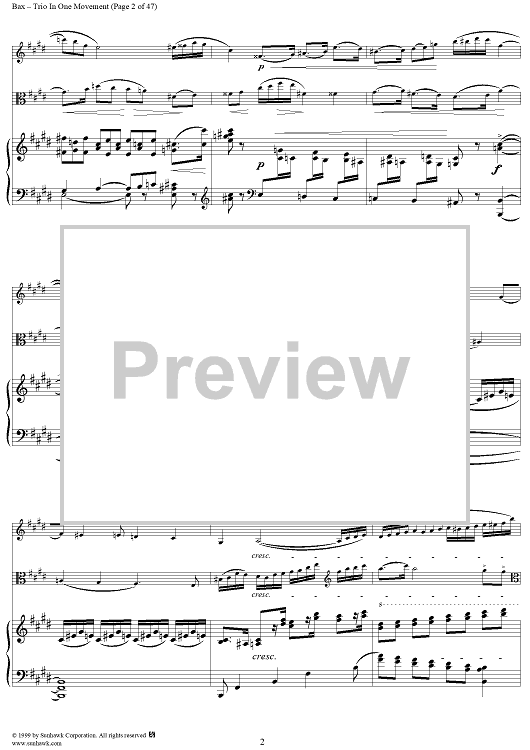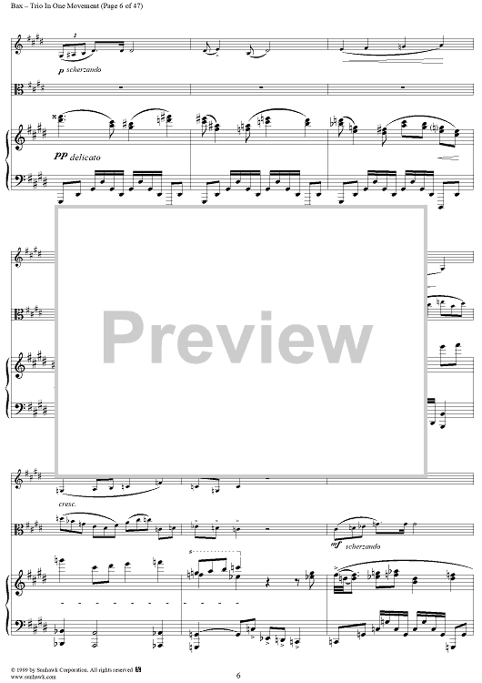 Digital Sheet Music for Trio In One Movement, Op. 4 - Score by Arnold Bax scored for Violin/Viola/Piano; id:250877