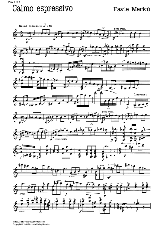 Digital Sheet Music for Calmo espressivo by Pavle Merkù scored for Violin; id:334218