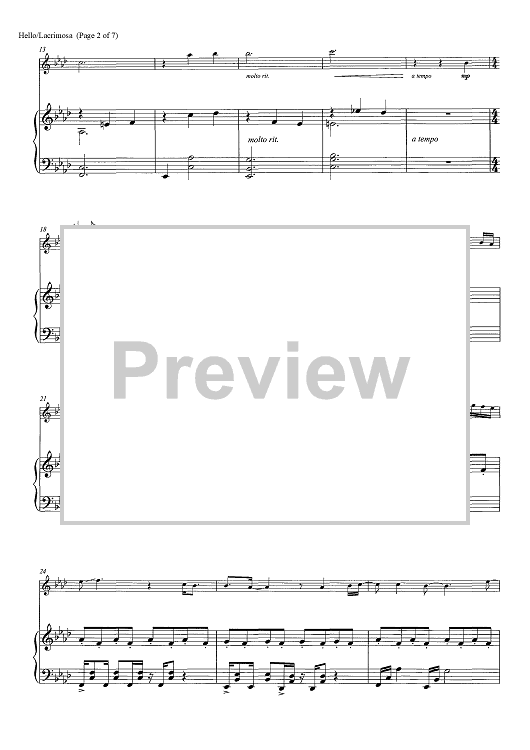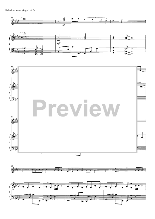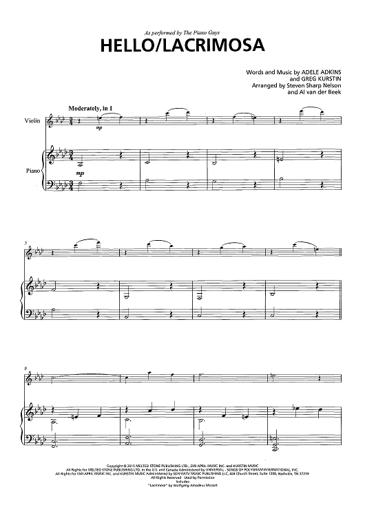 Digital Sheet Music for Hello/Lacrimosa by Greg Kurstin, Adele Adkins, Al Van Der Beek, Steven Sharp Nelson, The Piano Guys scored for Violin and Piano; id:465123