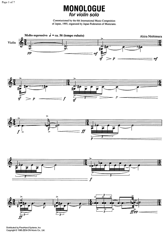 Digital Sheet Music for Monologue by , Akira Nishimura scored for Violin; id:337436