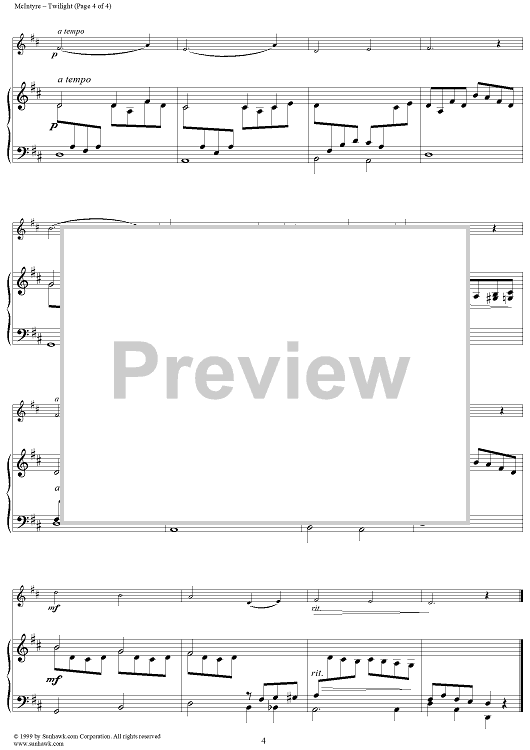 Digital Sheet Music for Ten Melodies from Song-Land, Op12 - 6. Twilight by Edwin Vaile McIntyre scored for Violin/Piano; id:251718