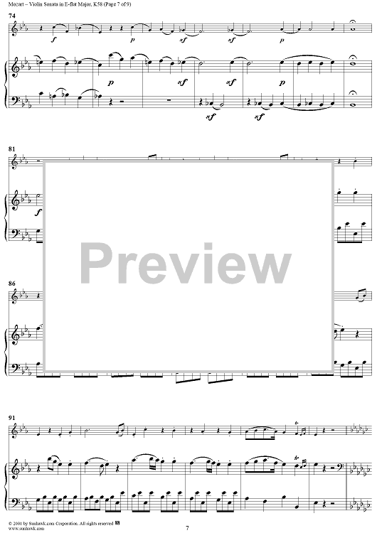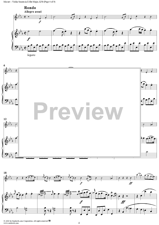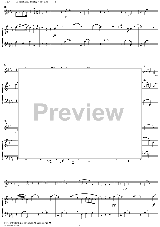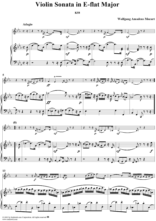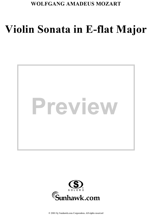 Digital Sheet Music for Violin Sonata in E-flat Major, K58 - Piano Score by Wolfgang Amadeus Mozart scored for Violin/Piano; id:270895