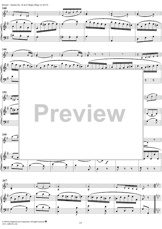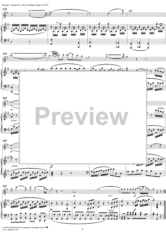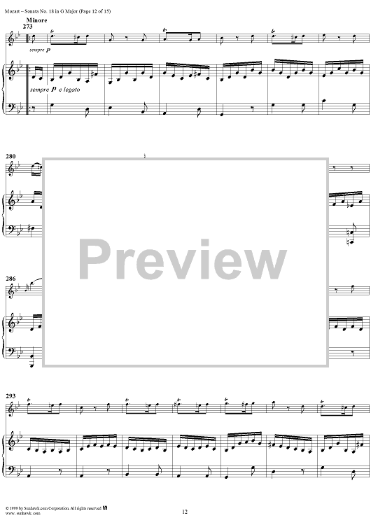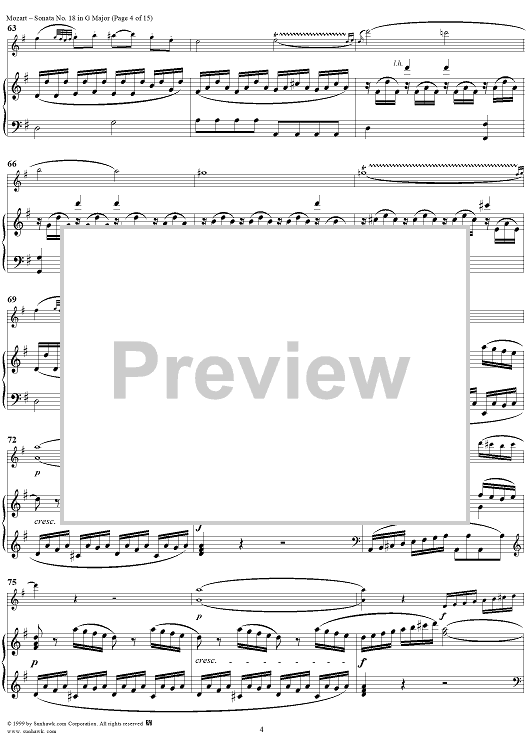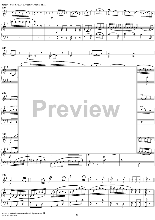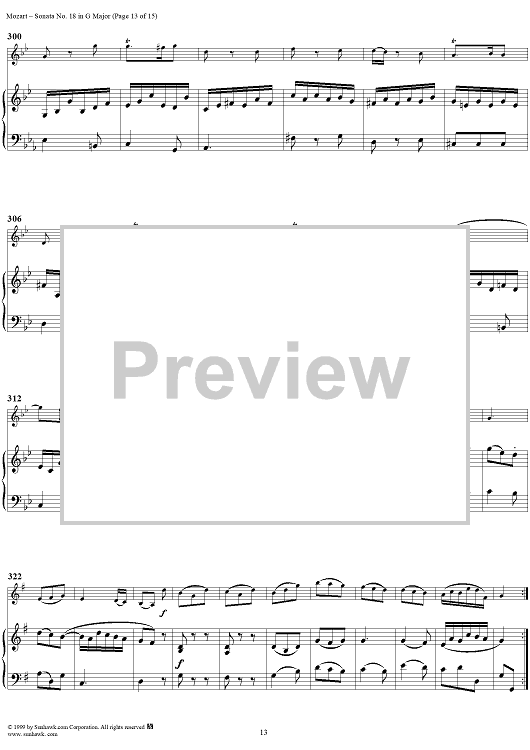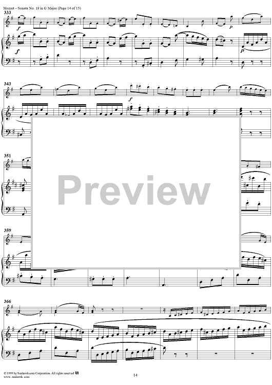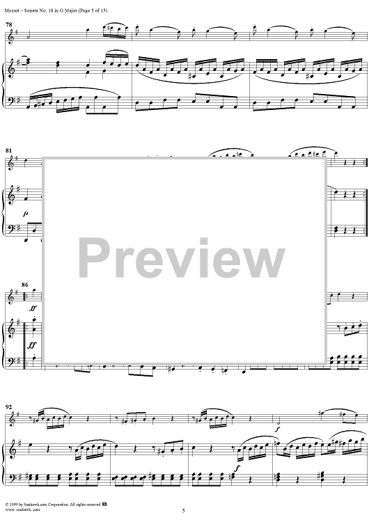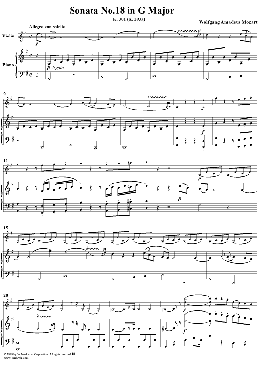 Digital Sheet Music for Violin Sonata no. 18 in G major, K. 301 - Piano by Wolfgang Amadeus Mozart scored for Violin/Piano; id:118230