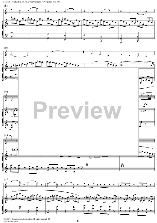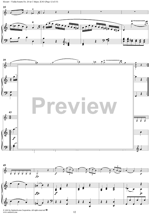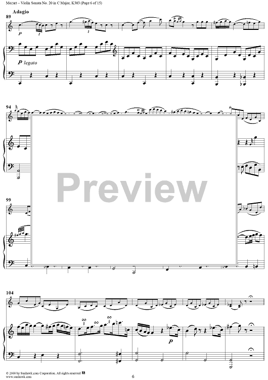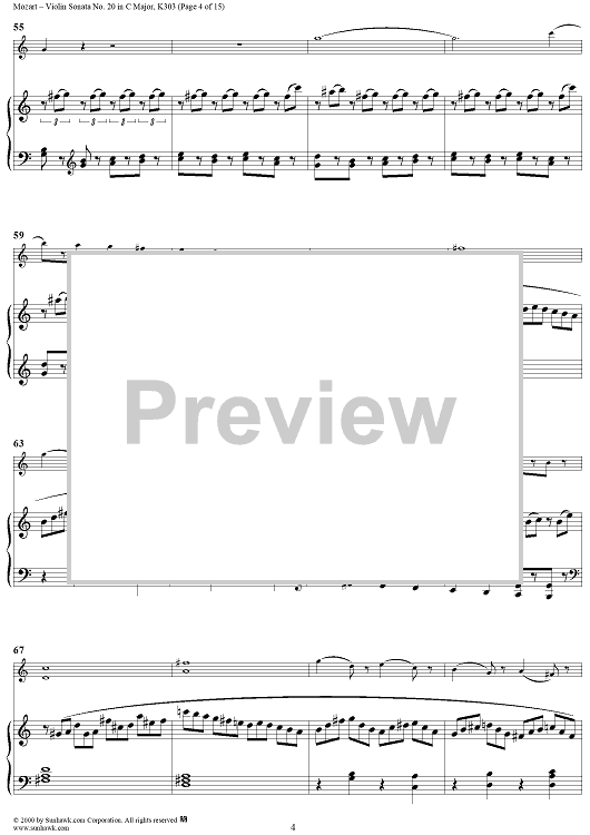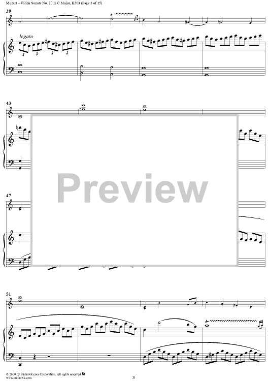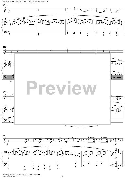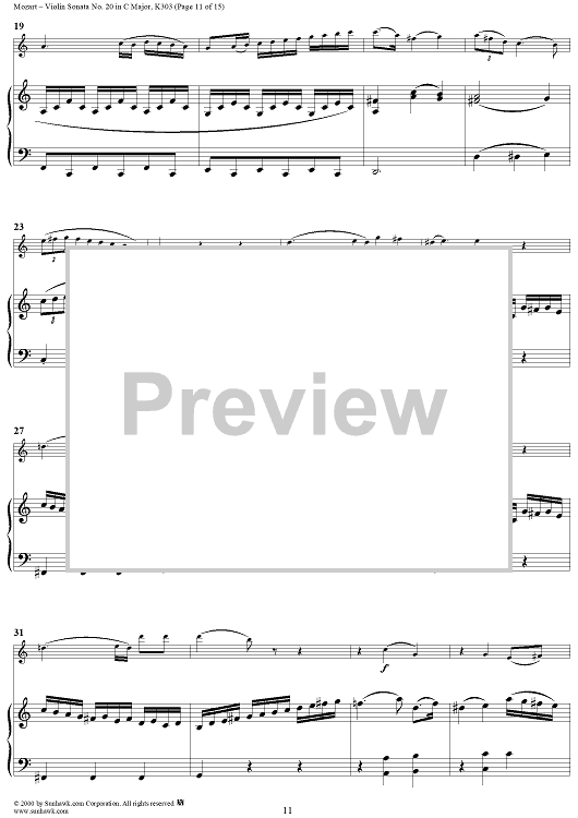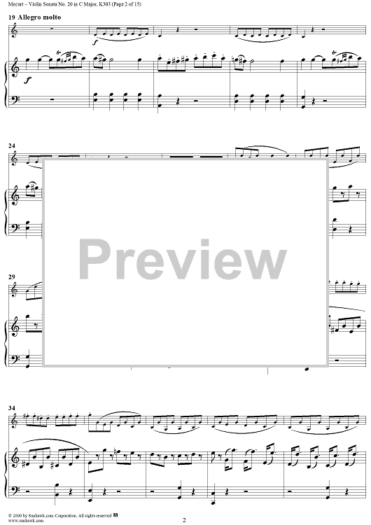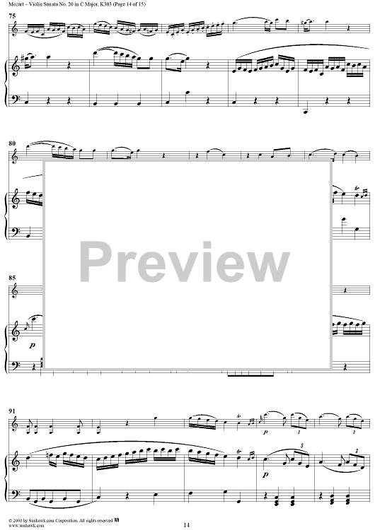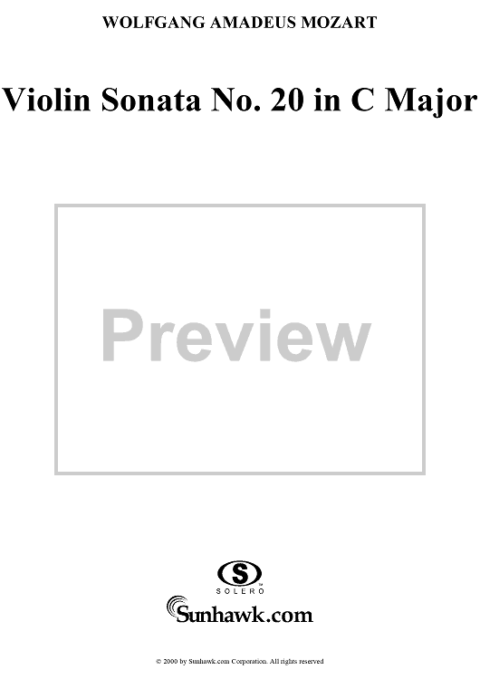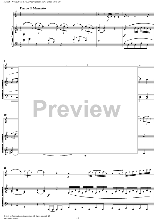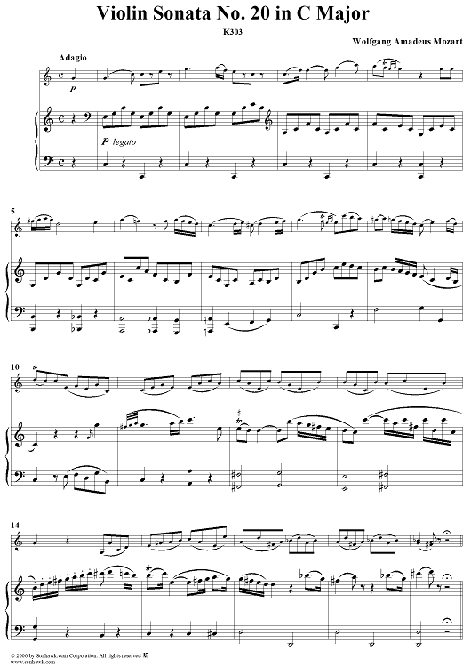 Digital Sheet Music for Violin Sonata No. 20 in C Major, K293c (K303) - Piano Score by Wolfgang Amadeus Mozart scored for Violin/Piano; id:265537