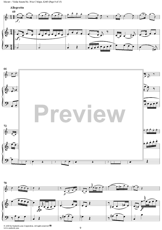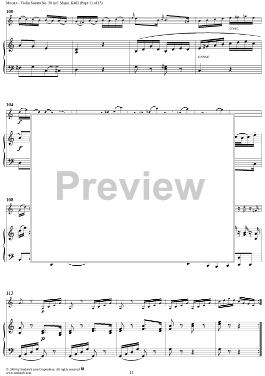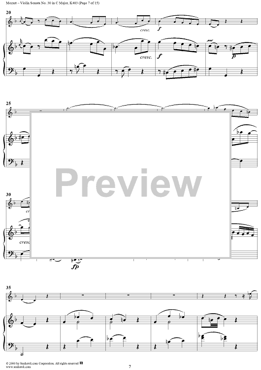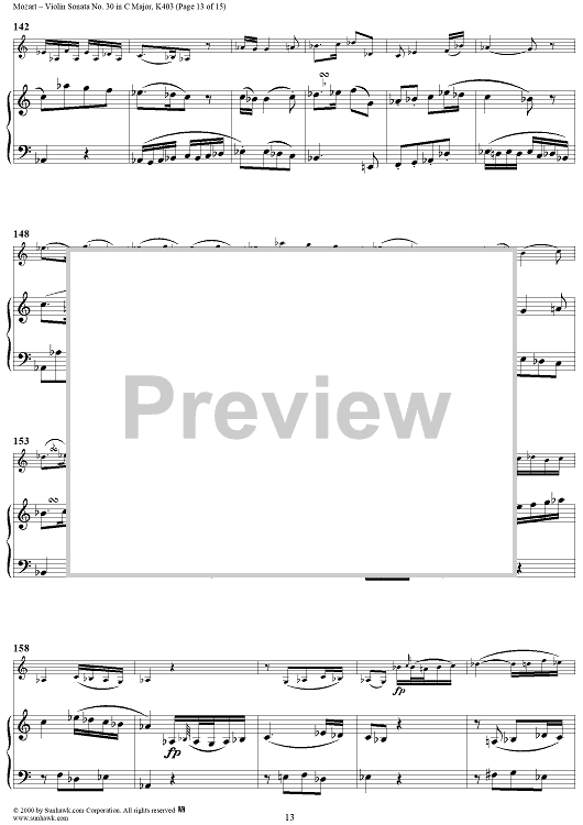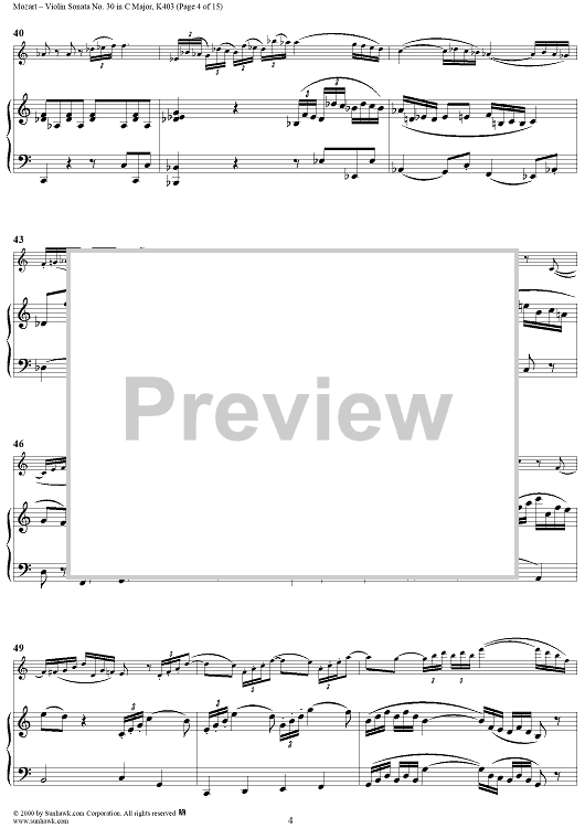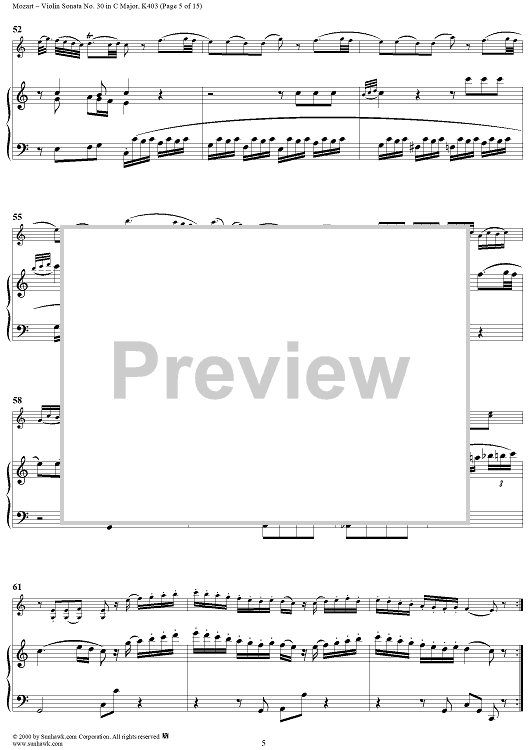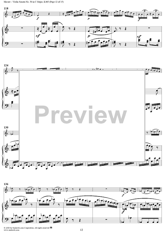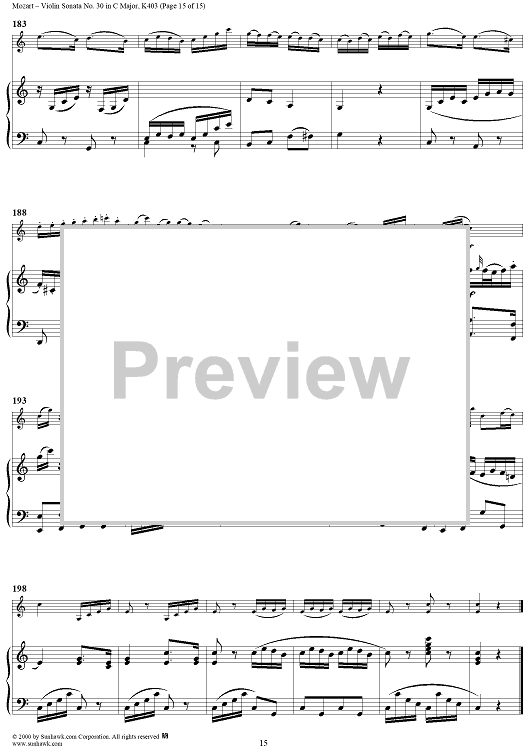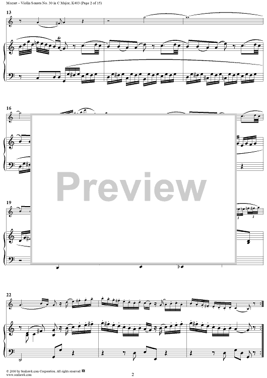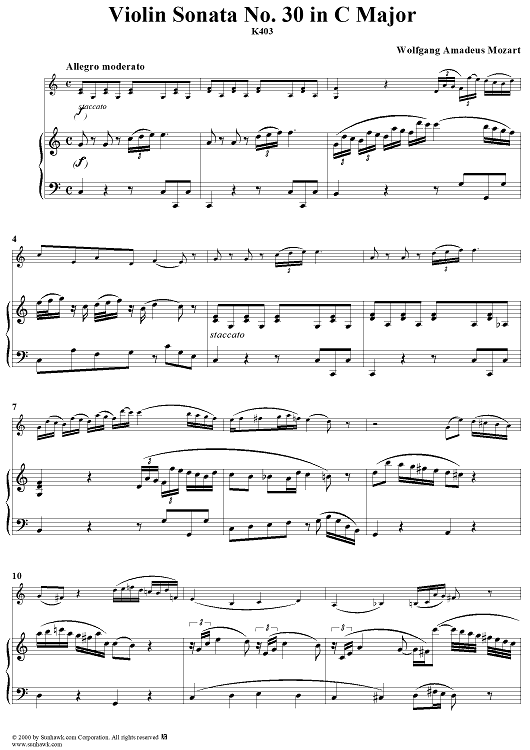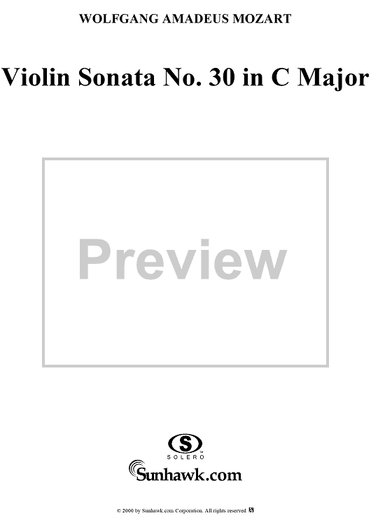 Digital Sheet Music for Violin Sonata No. 30 in C Major, K385c - Full Score by Wolfgang Amadeus Mozart scored for Violin/Piano; id:269851