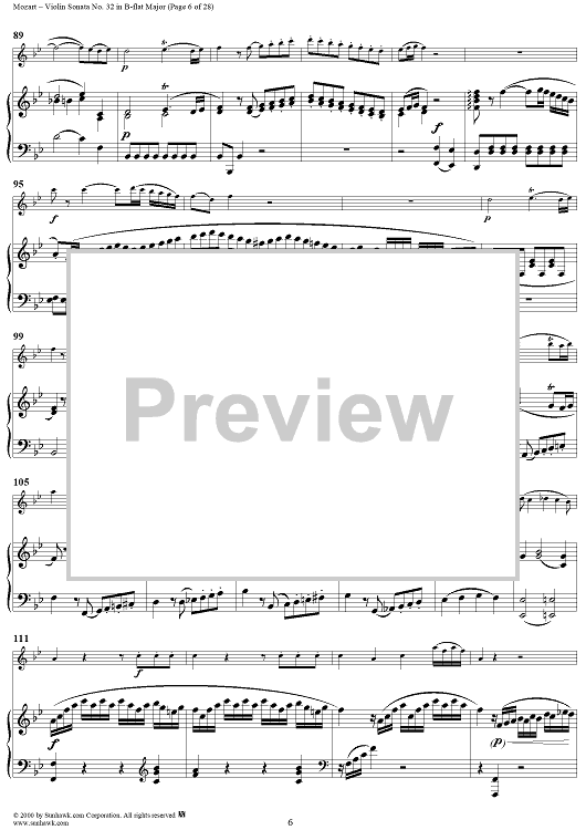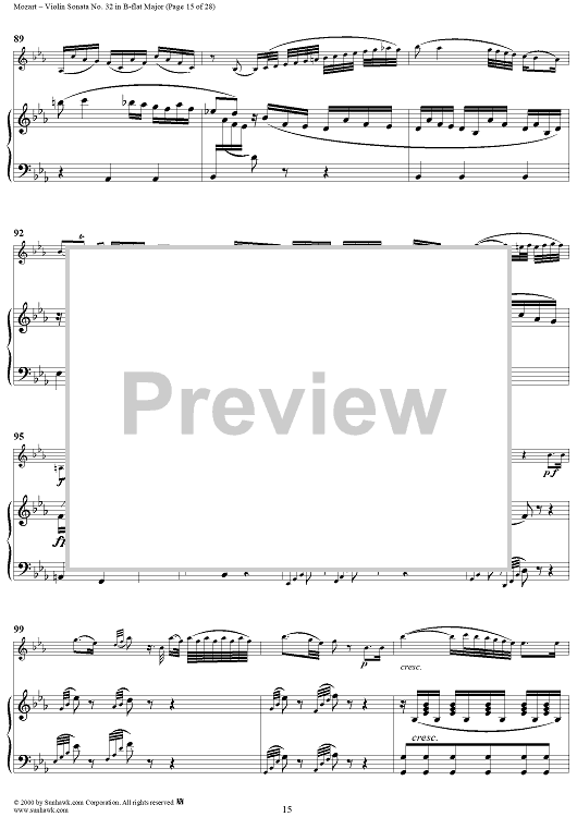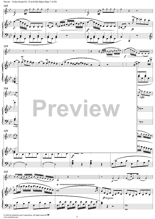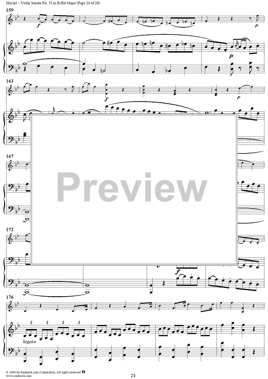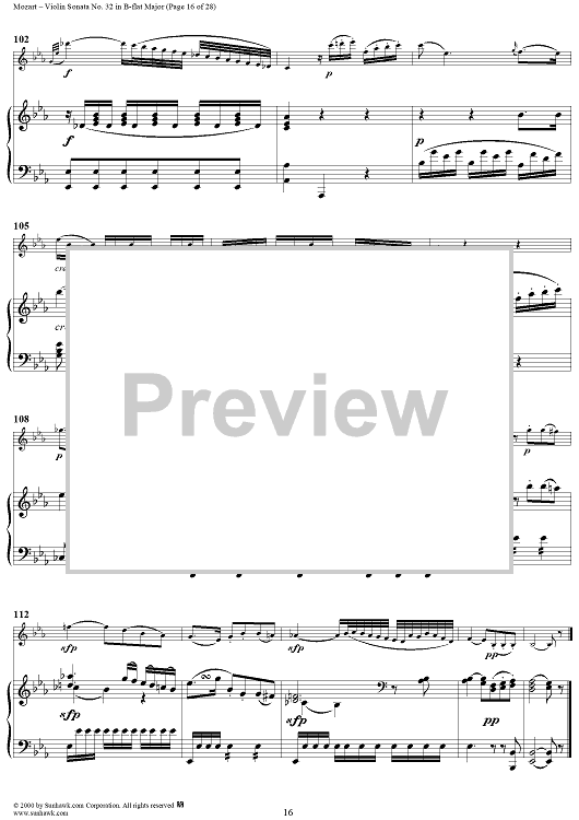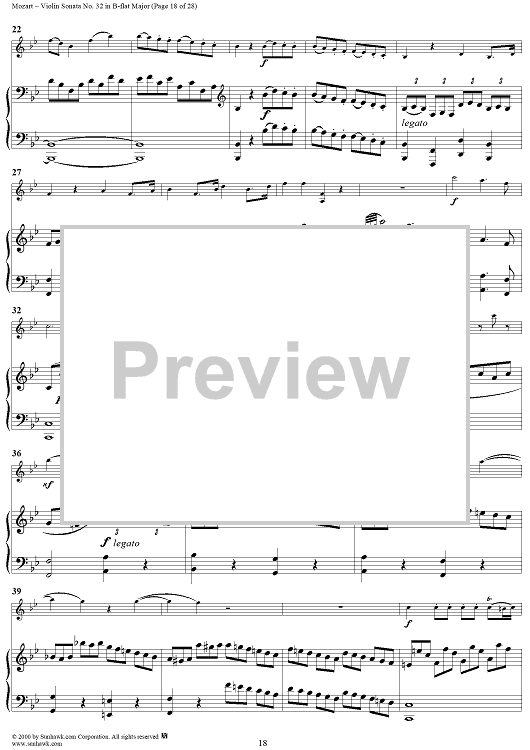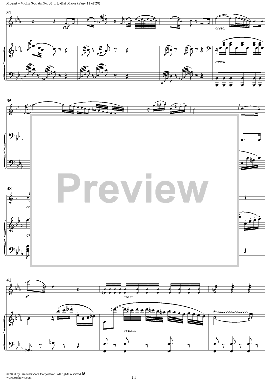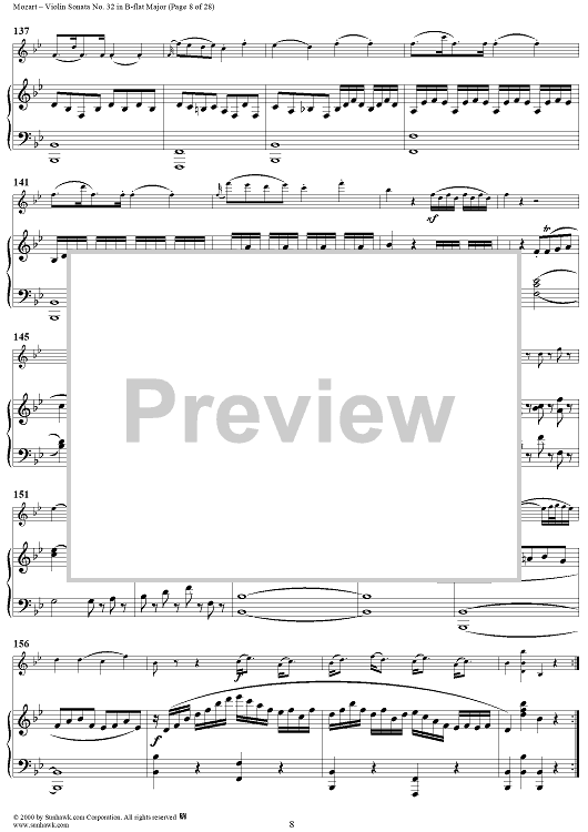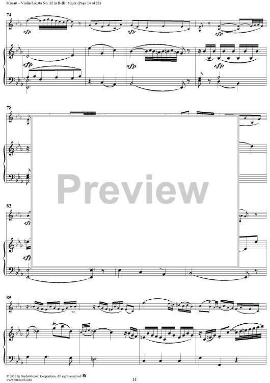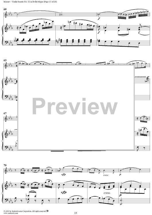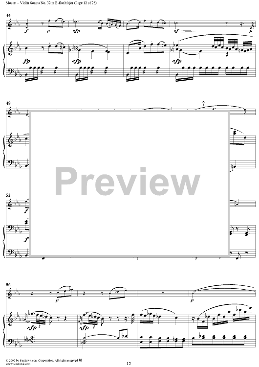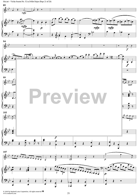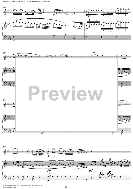 Digital Sheet Music for Violin Sonata No. 32 in B-flat Major, K454 - Full Score by Wolfgang Amadeus Mozart scored for Violin/Piano; id:264214
