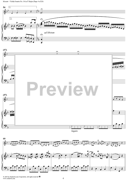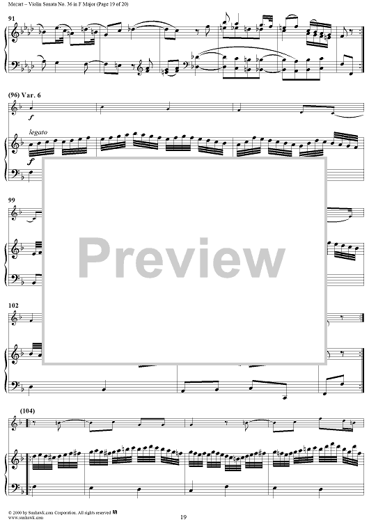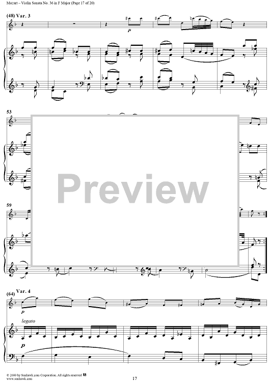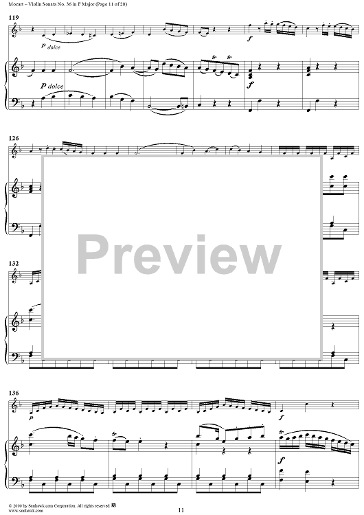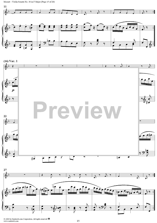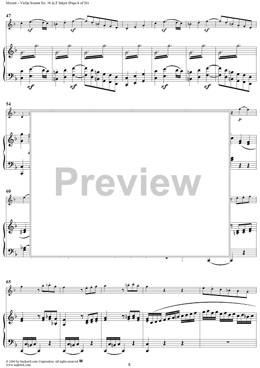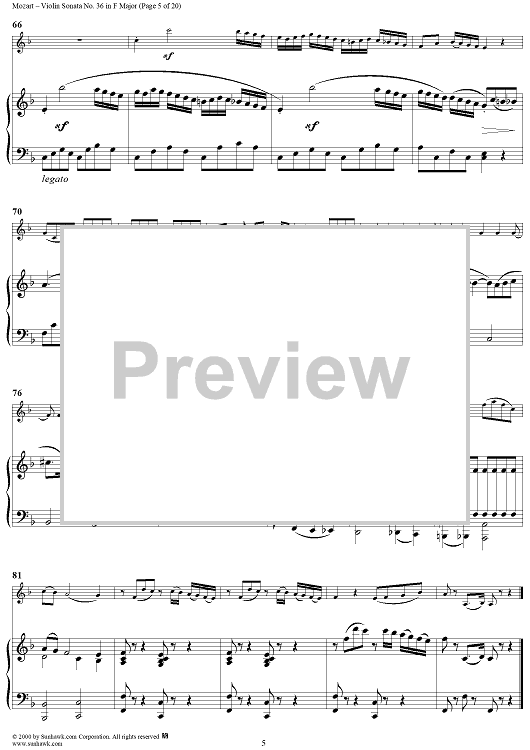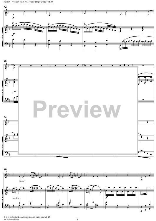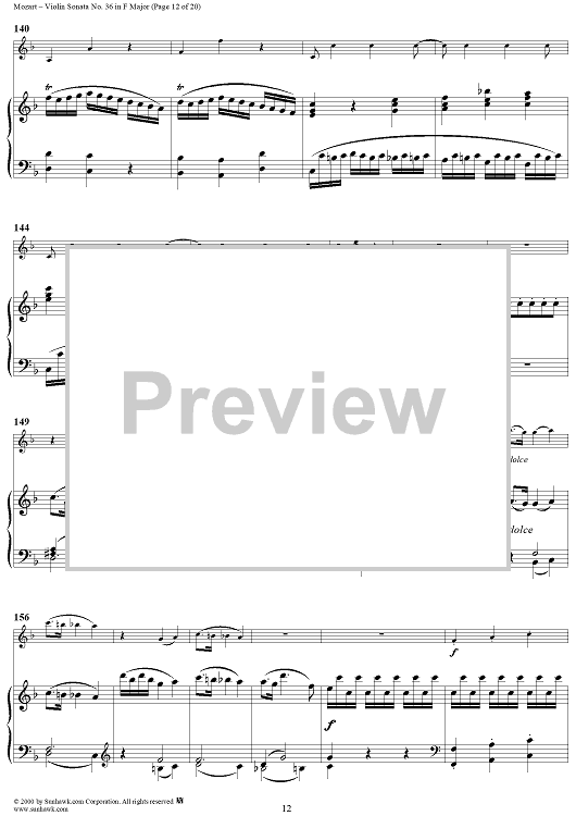 Digital Sheet Music for Violin Sonata No. 36 in F Major, "für Anfänger" - Full Score by Wolfgang Amadeus Mozart scored for Violin/Piano; id:256105