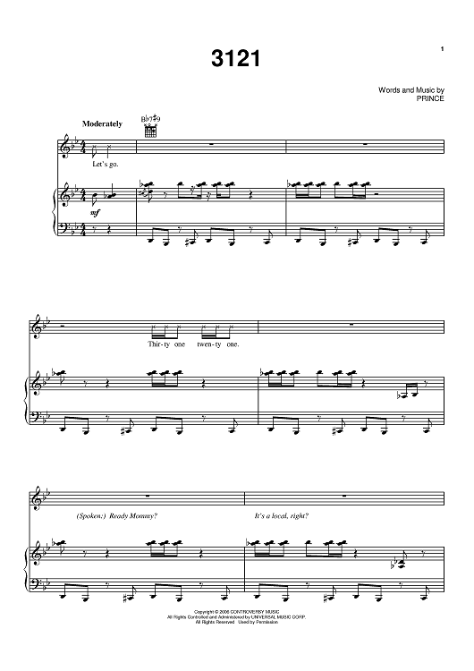 Digital Sheet Music for 3121 by Prince scored for Piano/Vocal/Chords; id:391058