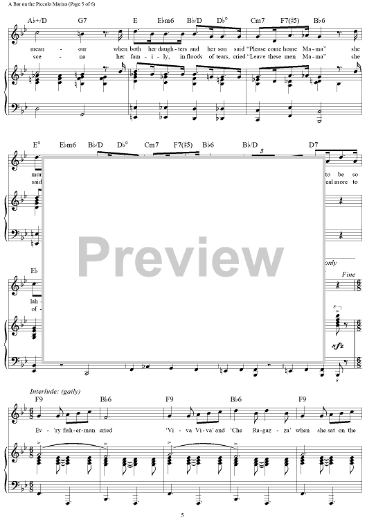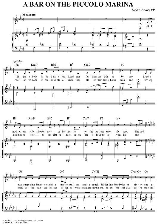 Digital Sheet Music for A Bar on the Piccolo Marina by Noel Coward scored for Piano/Vocal/Chords; id:357014