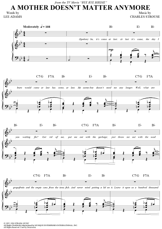 Digital Sheet Music for A Mother Doesn't Matter Anymore by Charles Strouse, Lee Adams scored for Piano/Vocal/Chords; id:259110