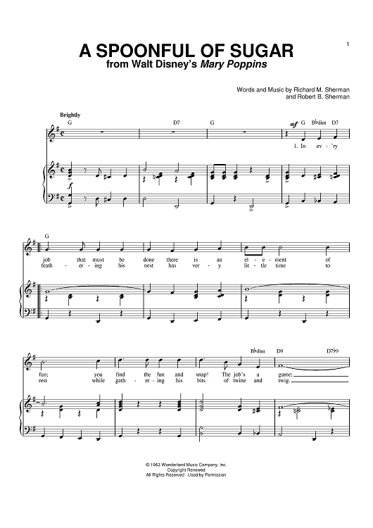 Digital Sheet Music for A Spoonful Of Sugar by Richard M. Sherman, Robert B. Sherman, Julie Andrews scored for Piano/Vocal/Chords; id:381236