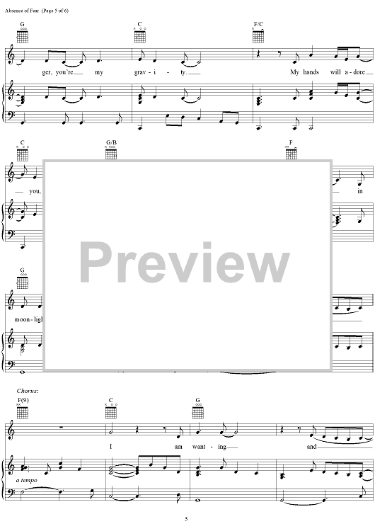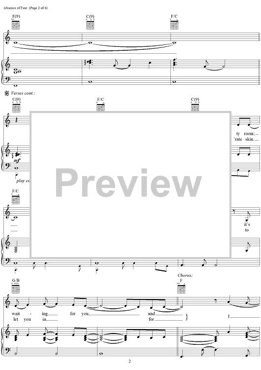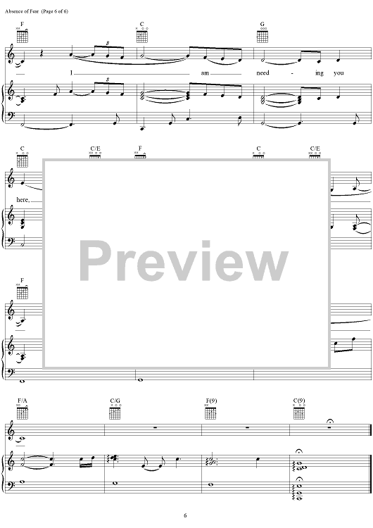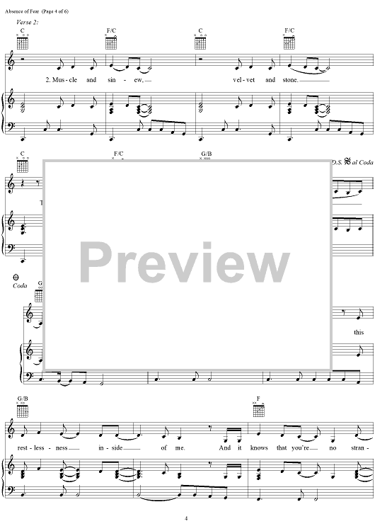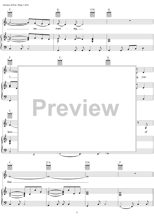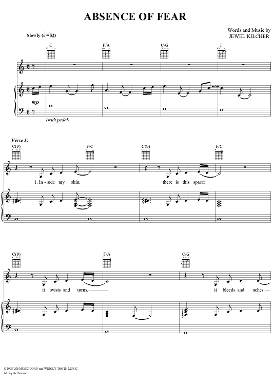 Digital Sheet Music for Absence of Fear by Jewel scored for Piano/Vocal/Chords; id:111020