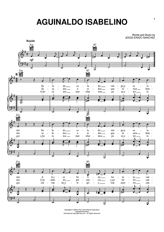 Digital Sheet Music for Aguinaldo Isabelino by Jesus Erazo Sanchez scored for Piano/Vocal/Chords; id:369813