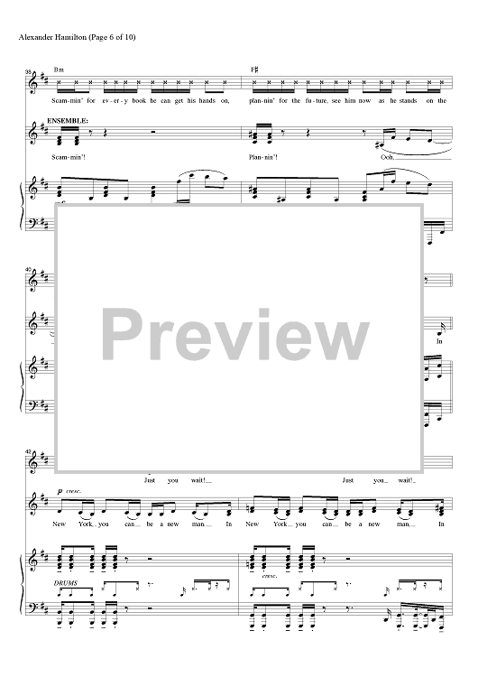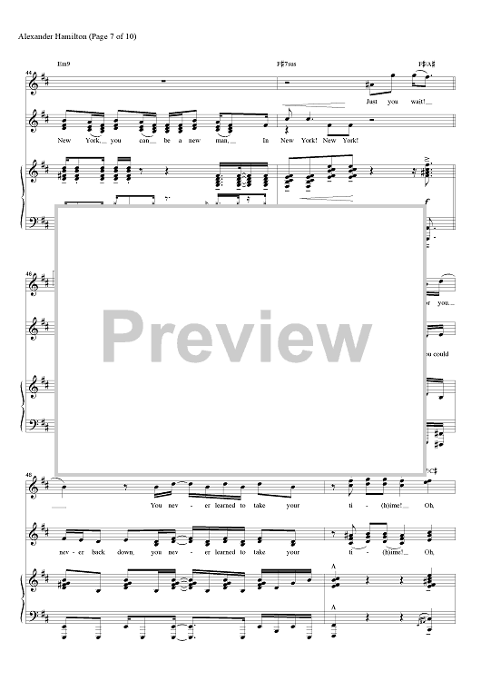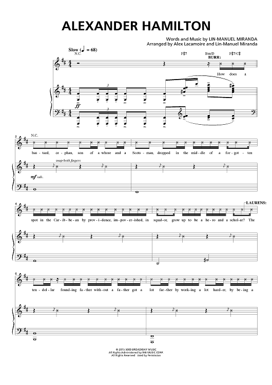 Digital Sheet Music for Alexander Hamilton by Lin-Manuel Miranda, Alex Lacamoire scored for Piano/Vocal/Chords; id:457295