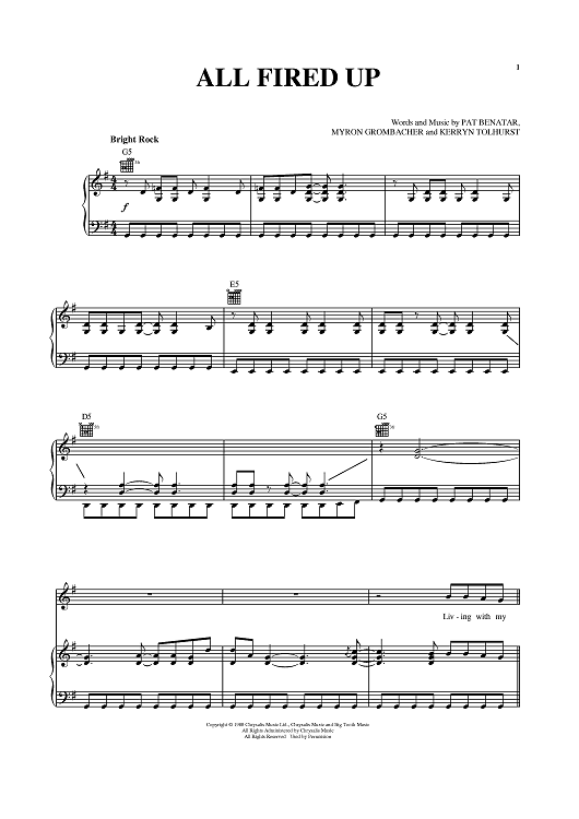 Digital Sheet Music for All Fired Up by Pat Benatar, Myron Grombacher, Kerryn Tolhurst scored for Piano/Vocal/Chords; id:388472