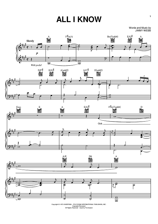 Digital Sheet Music for All I Know by Jimmy Webb, Five for Fighting scored for Piano/Vocal/Chords; id:388588