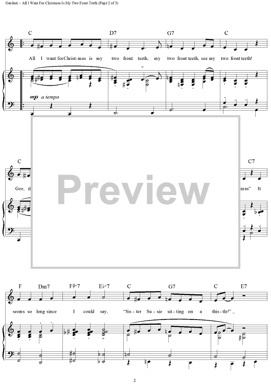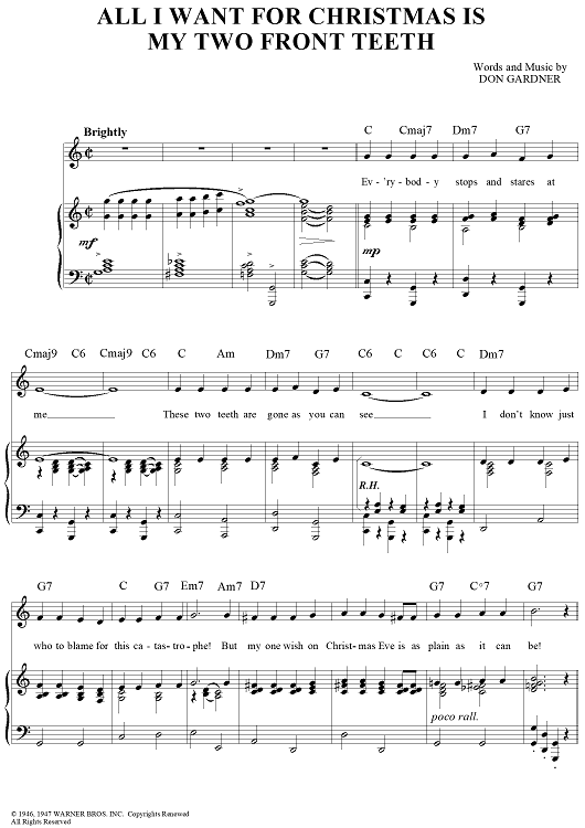 Digital Sheet Music for All I Want For Christmas Is My Two Front Teeth by Don Gardner scored for Piano/Vocal/Chords; id:95212