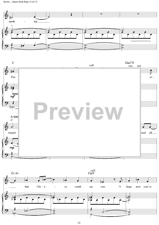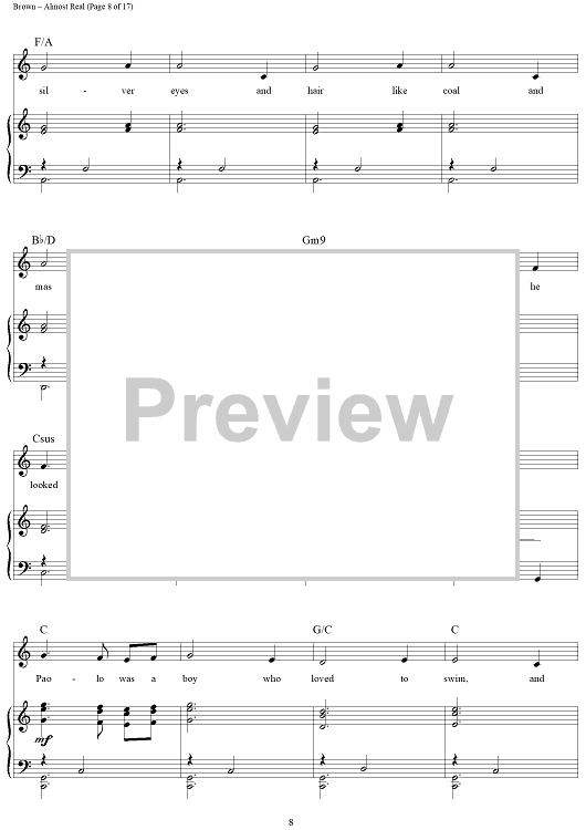 Digital Sheet Music for Almost Real by Jason Robert Brown scored for Piano/Vocal/Chords; id:444093