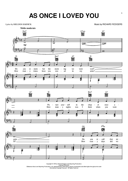 Digital Sheet Music for As Once I Loved You by Richard Rodgers, Sheldon Harnick scored for Piano/Vocal/Chords; id:381398