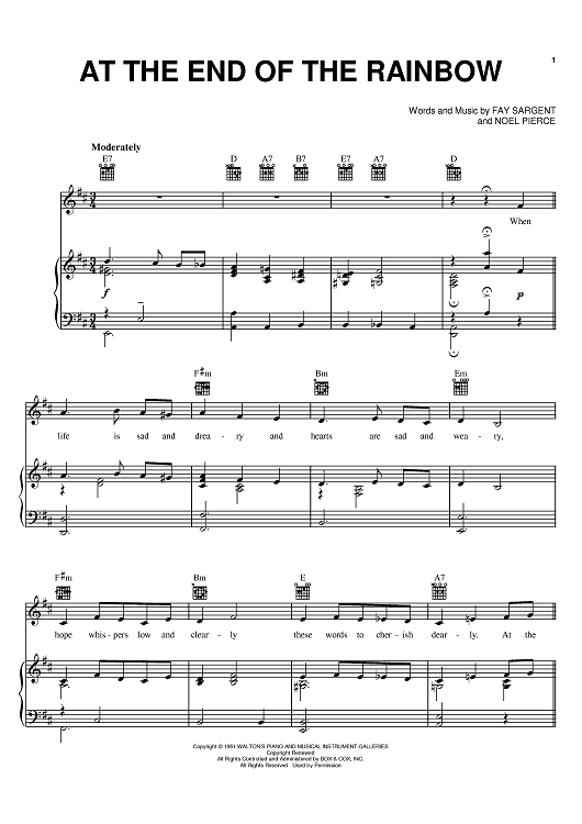 Digital Sheet Music for At The End Of The Rainbow by Noel Pierce, Fay Sargent scored for Piano/Vocal/Chords; id:393708