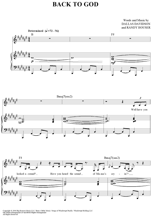 Digital Sheet Music for Back To God by Reba McEntire, Dallas Davidson, Randy Houser scored for Piano/Vocal/Chords; id:463902