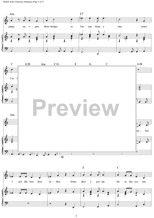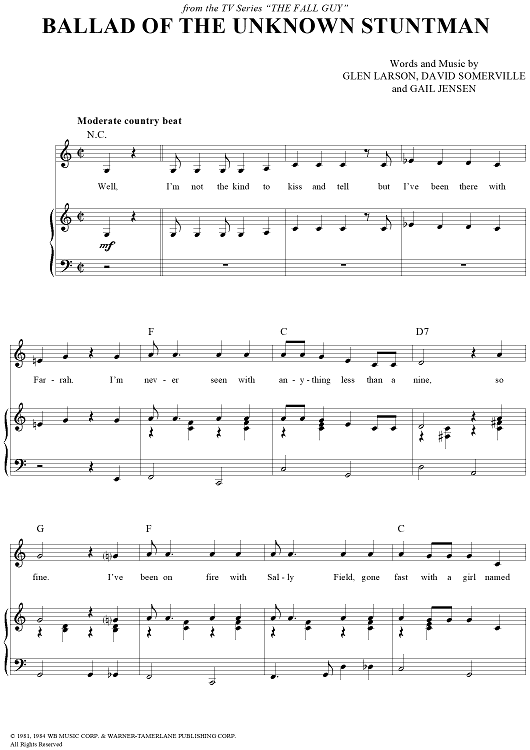 Digital Sheet Music for Ballad of the Unknown Stuntman by Gail Jensen, Glen Larson, David Somerville scored for Piano/Vocal/Chords; id:250346