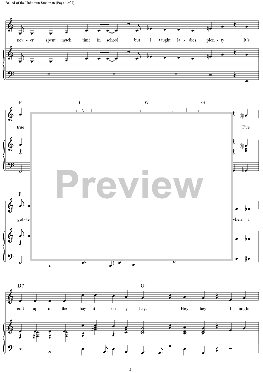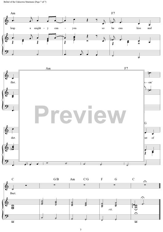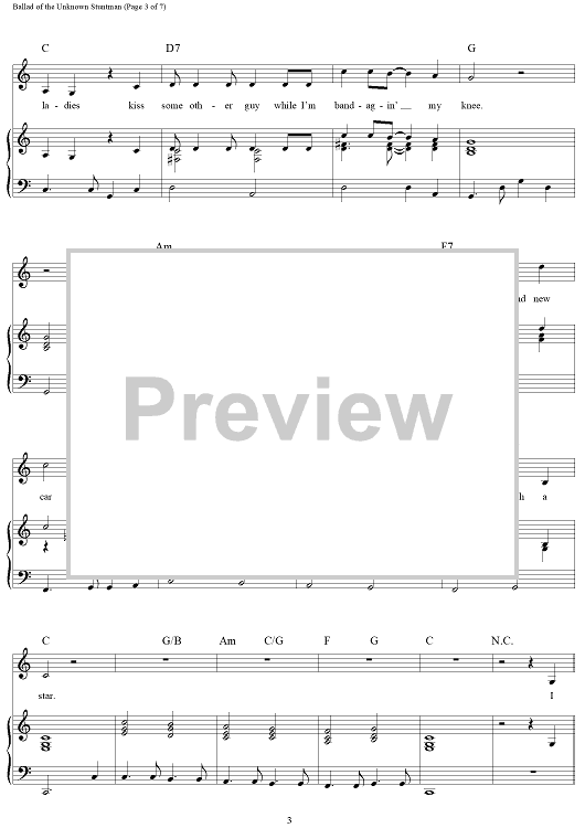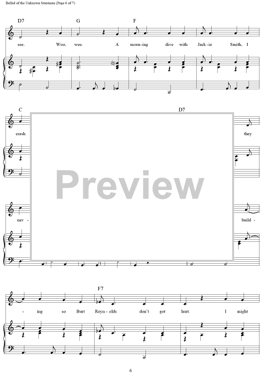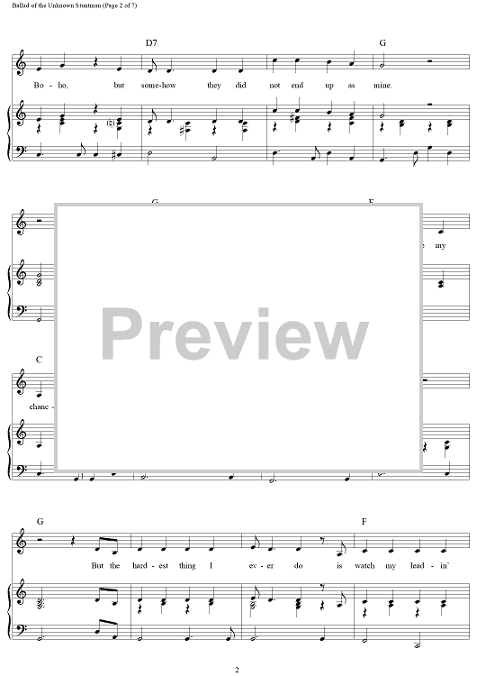"Ballad of the Unknown Stuntman" Sheet Music by Gail Jensen