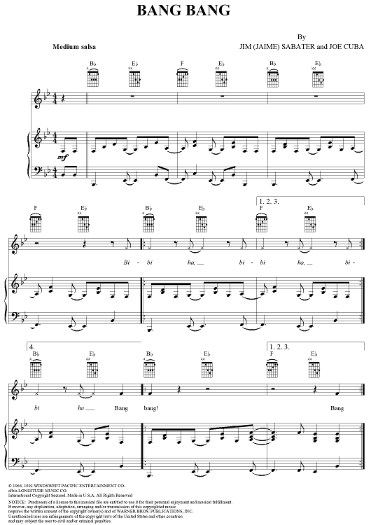 Digital Sheet Music for Bang Bang by Jim (Jaime) Sabater, Joe Cuba scored for Piano/Vocal/Chords; id:256242