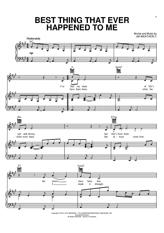 Digital Sheet Music for Best Thing That Ever Happened To Me by Jim Weatherly, Gladys Knight & the Pips, Sweet Surrender scored for Piano/Vocal/Chords; id:382712