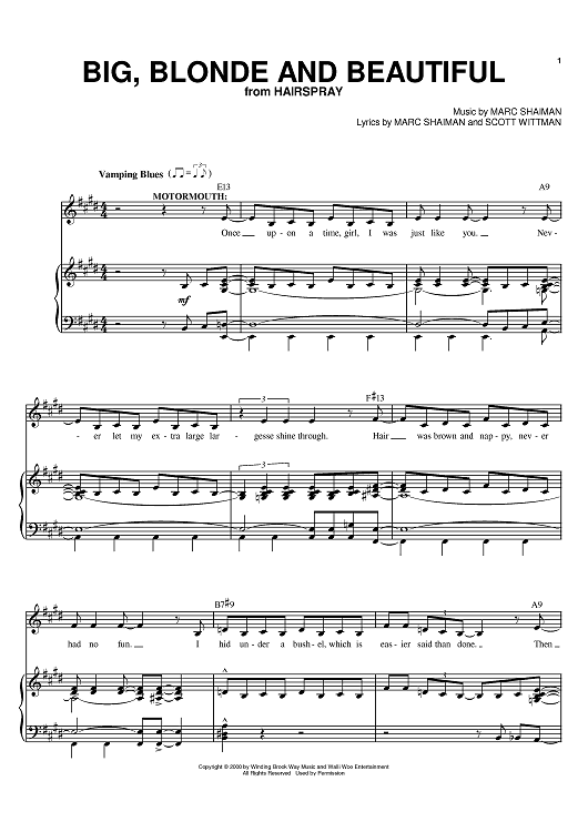 Digital Sheet Music for Big, Blonde And Beautiful by Marc Shaiman, Scott Wittman scored for Piano/Vocal/Chords; id:381768
