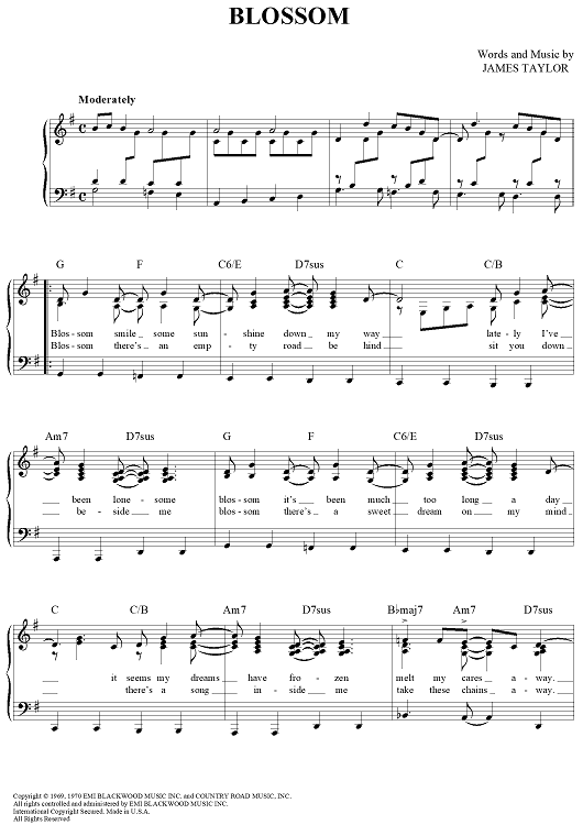 Digital Sheet Music for Blossom by James Taylor scored for Piano/Vocal/Chords; id:318739