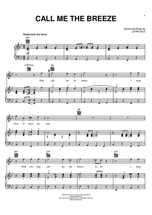 Digital Sheet Music for Call Me The Breeze by Lynyrd Skynyrd, John Cale scored for Piano/Vocal/Chords; id:381600