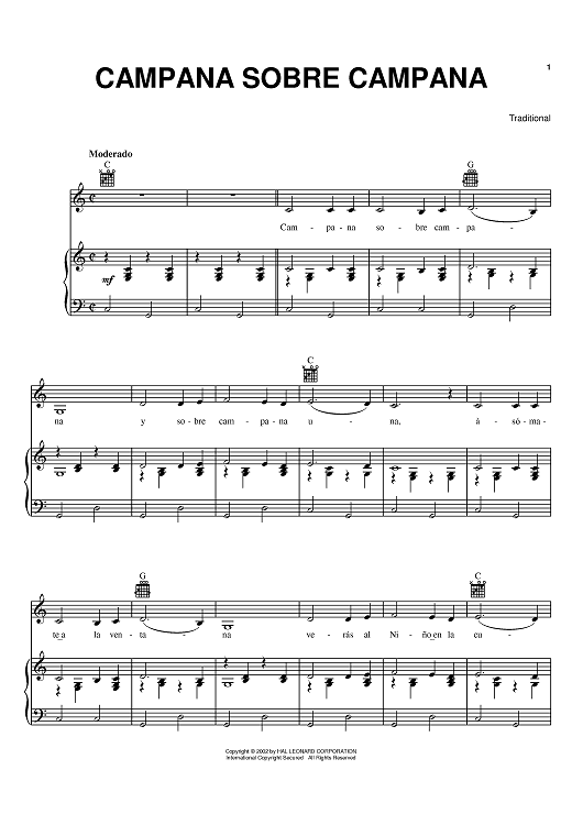 Digital Sheet Music for Campana Sobre Campana by Traditional scored for Piano/Vocal/Chords; id:369821