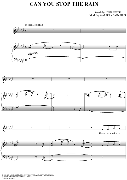 Digital Sheet Music for Can You Stop the Rain by Peabo Bryson, Wally Afanasieff, John Bettis scored for Piano/Vocal/Chords; id:116199