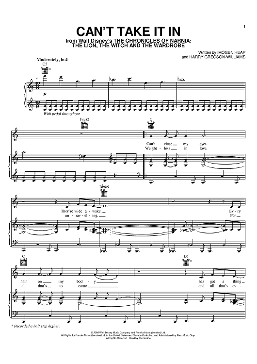 Digital Sheet Music for Can't Take It In by Harry Gregson-Williams, Imogen Heap scored for Piano/Vocal/Chords; id:387539