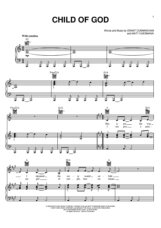 Digital Sheet Music for Child Of God by Matt Huesmann, Grant Cunningham, Amy Grant scored for Piano/Vocal/Chords; id:401044