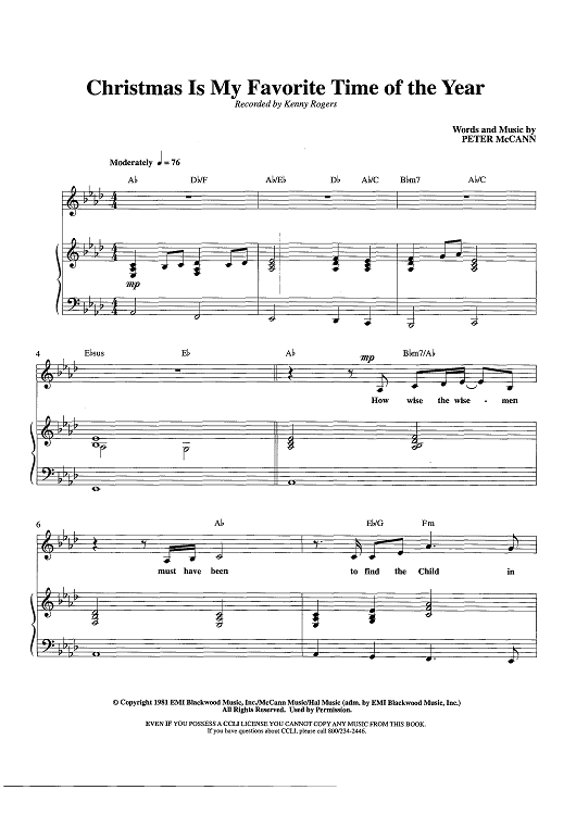 Digital Sheet Music for Christmas Is My Favorite Time of the Year by Kenny Rogers, Peter McCann scored for Piano/Vocal/Chords; id:438285