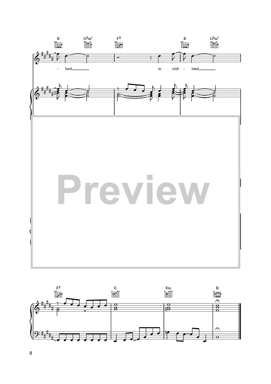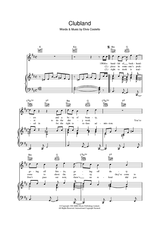 Digital Sheet Music for Clubland by Elvis Costello scored for Piano/Vocal/Chords; id:401609