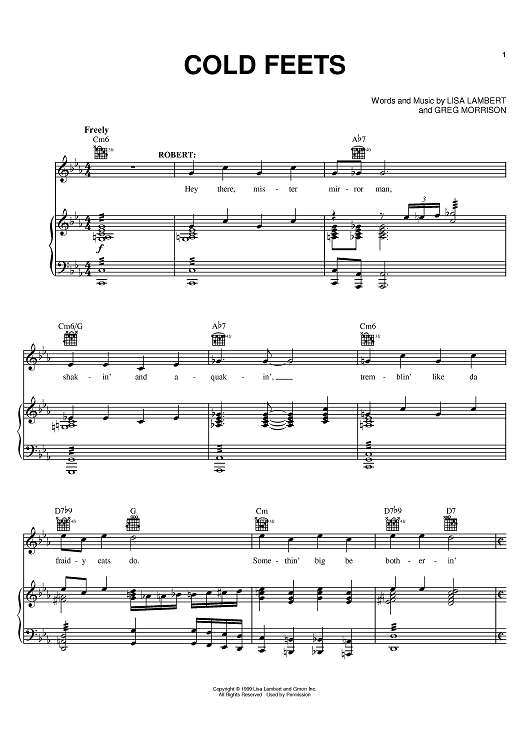 Digital Sheet Music for Cold Feets by Lisa Lambert, Greg Morrison scored for Piano/Vocal/Chords; id:396868