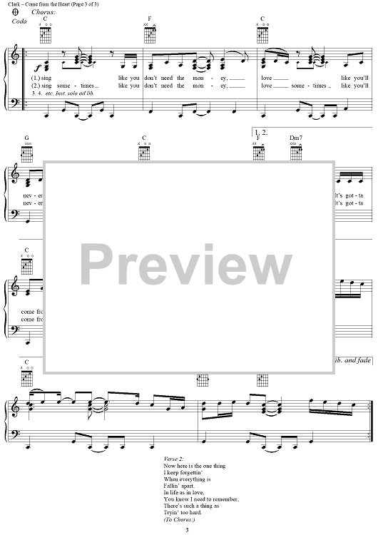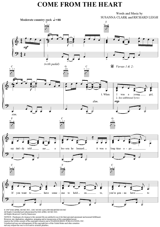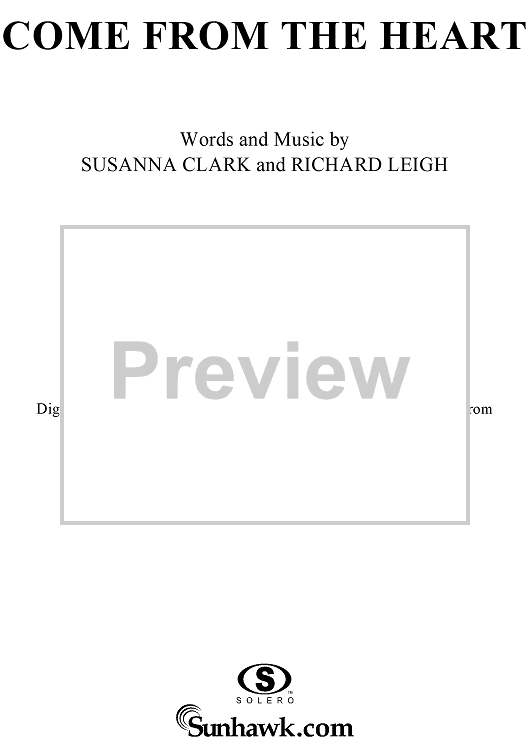 Digital Sheet Music for Come from the Heart by Richard Leigh, Kathy Mattea, Susanna Clark scored for Piano/Vocal/Chords; id:285523