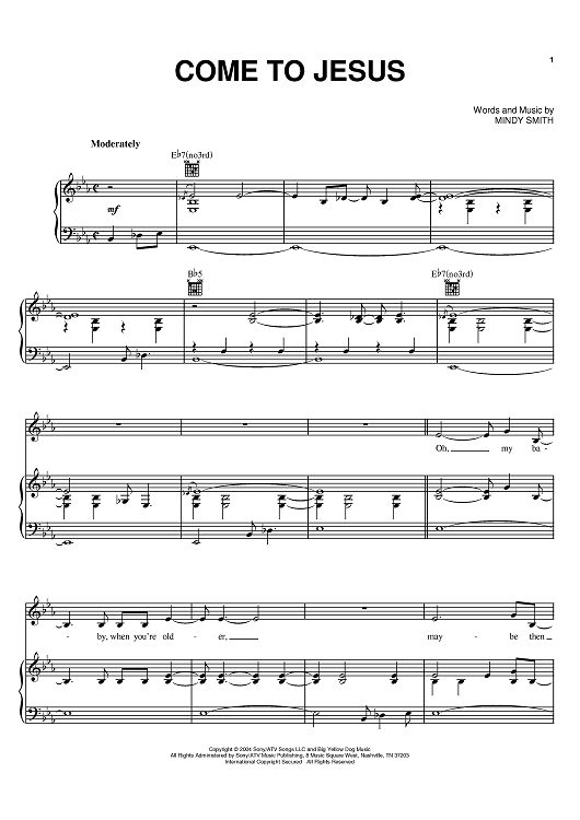 Digital Sheet Music for Come To Jesus by Mindy Smith scored for Piano/Vocal/Chords; id:381190