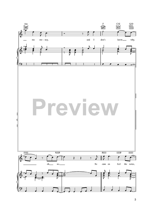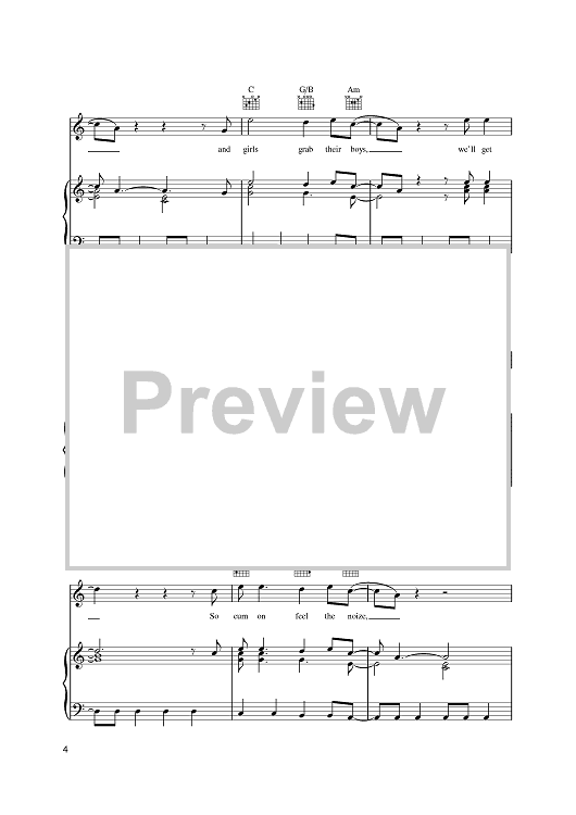 Digital Sheet Music for Cum On Feel The Noize by Noddy Holder, Jim Lea, Slade scored for Piano/Vocal/Chords; id:398836