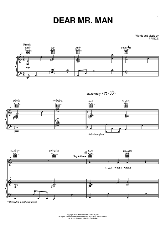 Digital Sheet Music for Dear Mr. Man by Prince scored for Piano/Vocal/Chords; id:389697