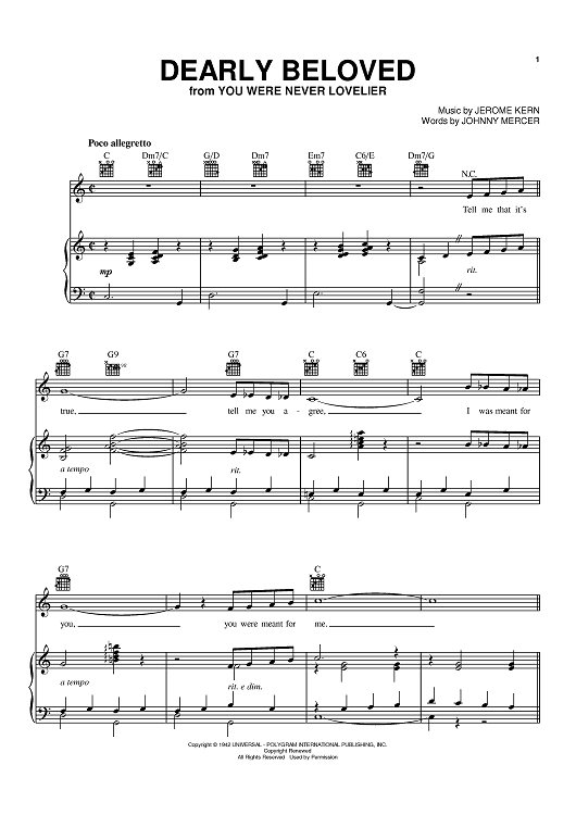 Digital Sheet Music for Dearly Beloved by Johnny Mercer, Fred Astaire, Jerome Kern, Sonny Rollins, Glenn Miller, Dinah Shore scored for Piano/Vocal/Chords; id:381517