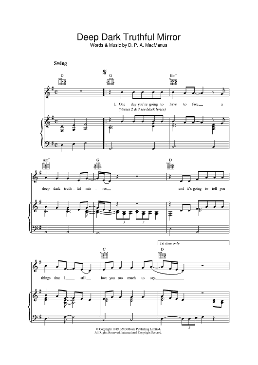 Digital Sheet Music for Deep Dark Truthful Mirror by Elvis Costello scored for Piano/Vocal/Chords; id:401611