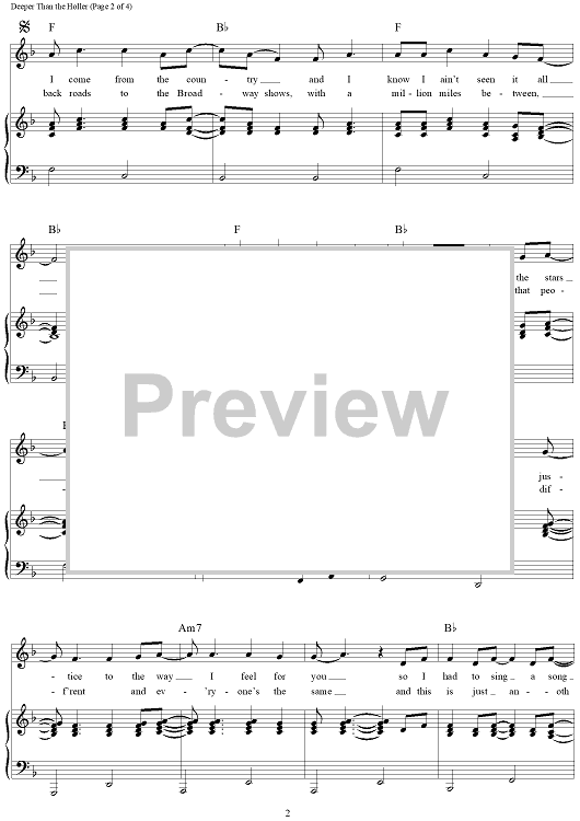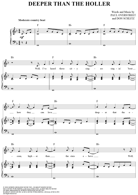Digital Sheet Music for Deeper Than The Holler by Randy Travis, Don Schlitz, Paul Overstreet scored for Piano/Vocal/Chords; id:253829